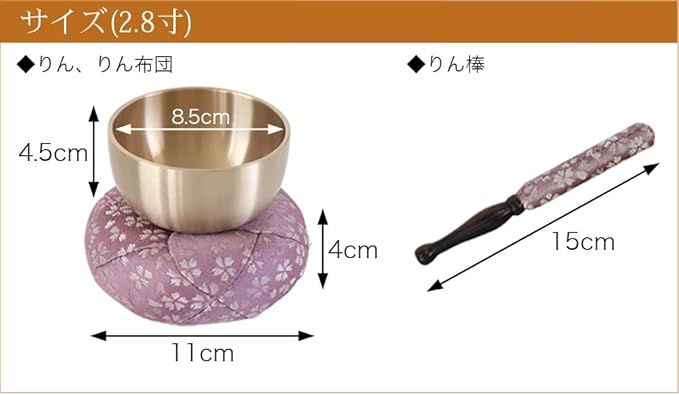 なーむくまちゃん工房 日和柄 国産おりんセット おリン+リン棒+布団 2.8寸(直径8.5cm)濃紫