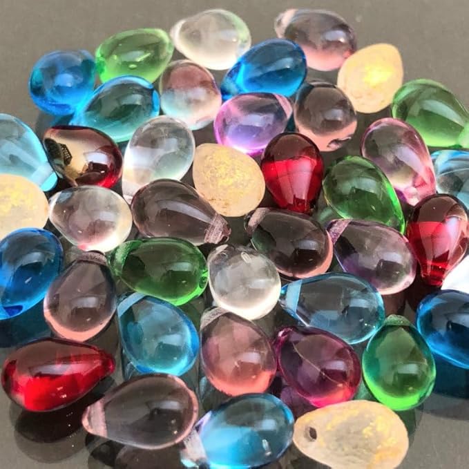 【デイジービーズ】【チェコ ビーズ デザイン ミックス】 ティアードロップ 約9x6mm (約38個)【チェコビーズ・デザイン・デザインビーズ】