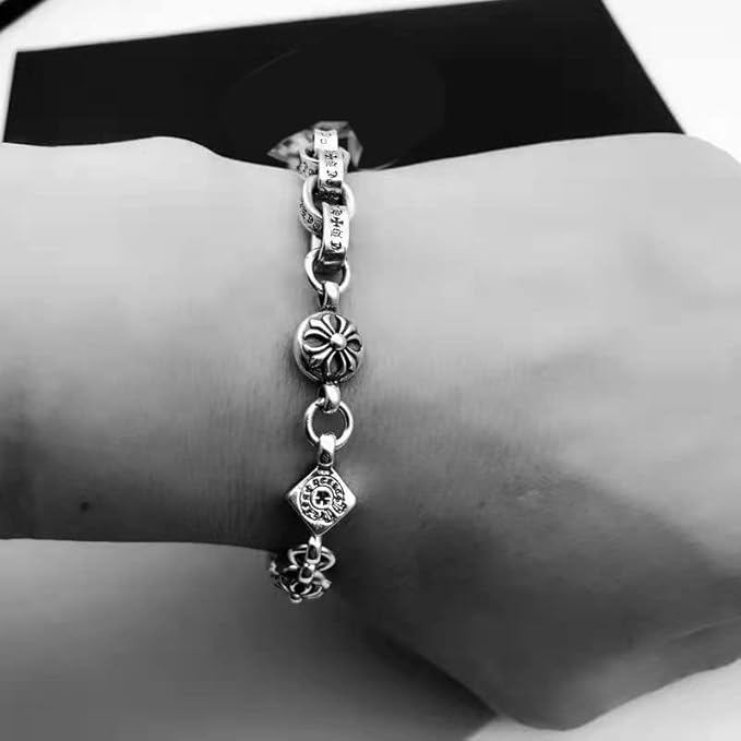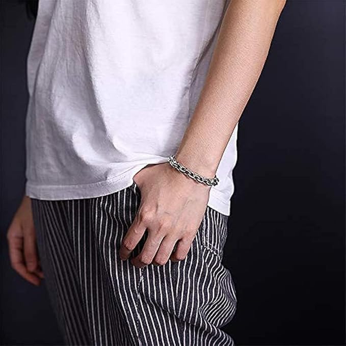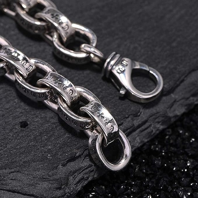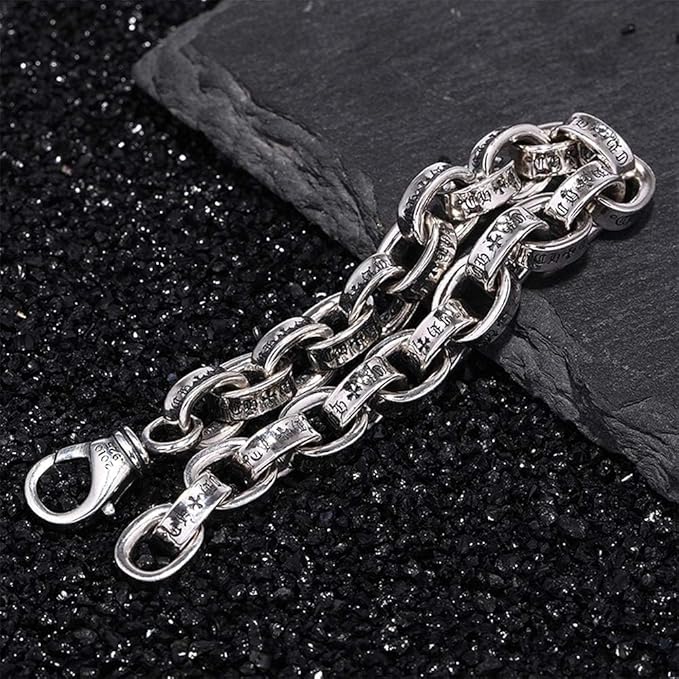 925スターリングシルバークラスプメンズパンクチェーンブレスレット, バイカーブレスレットクロスレタリング,24cm