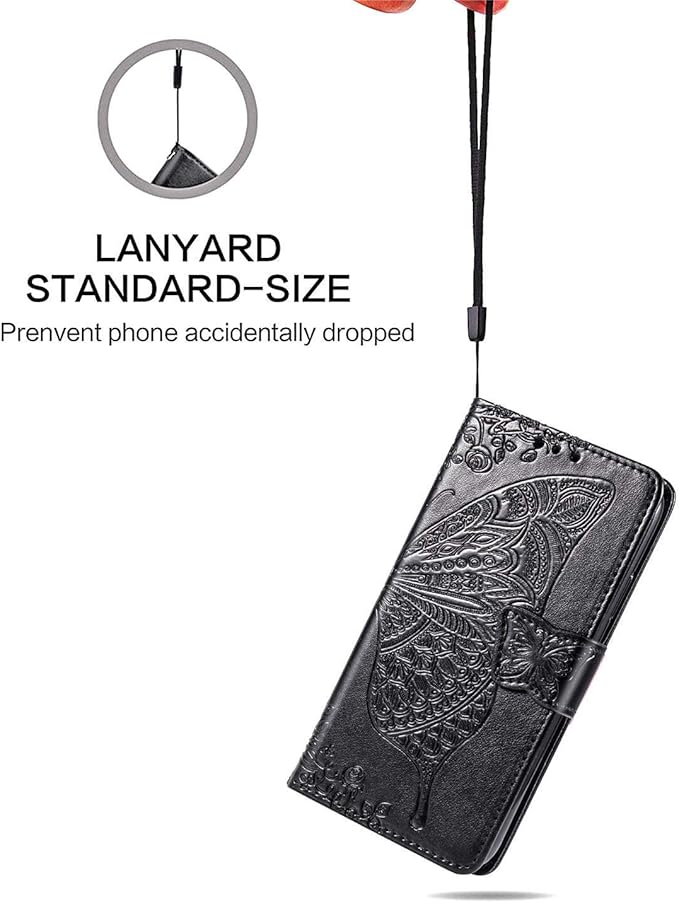 に適用するiPhone 12 miniケース 手帳型 ノートブック型携帯電話保護カバー多機能携帯電話ホルスター財布携帯電話ホルダーバンプパターンテクスチャ耐久性摩擦耐性携帯電話ケース男性と女性に適した多色オプション (バタフライ黒)