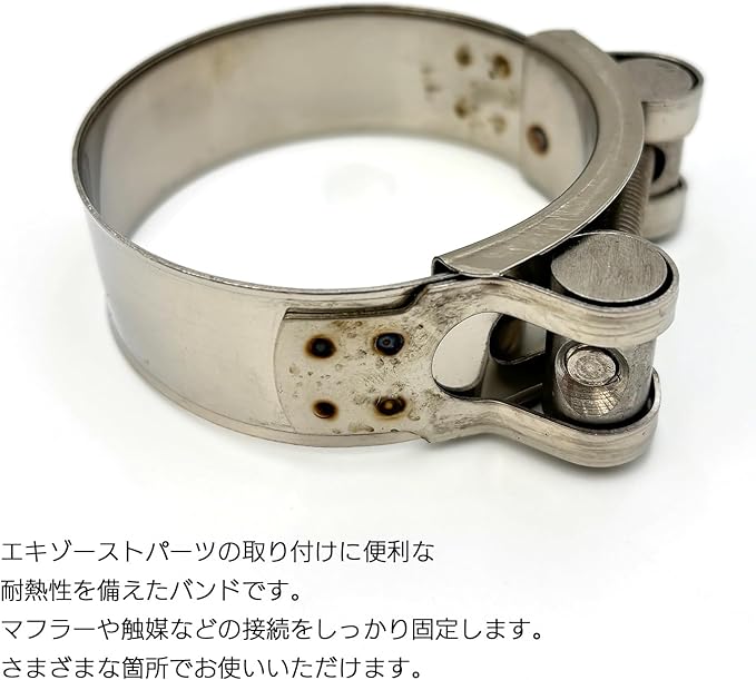 2個セットで提供されており、前後の取り付けやスペアとしての備えにも適しています。必要な箇所にすぐに使用できるので、コストパフォーマンスにも優れた選択肢です。マフラーや触媒以外にも、エキゾーストパイプの固定など、さまざまな用途に活用できます。高温環境での使用にも対応し、熱による劣化を最小限に抑えます。