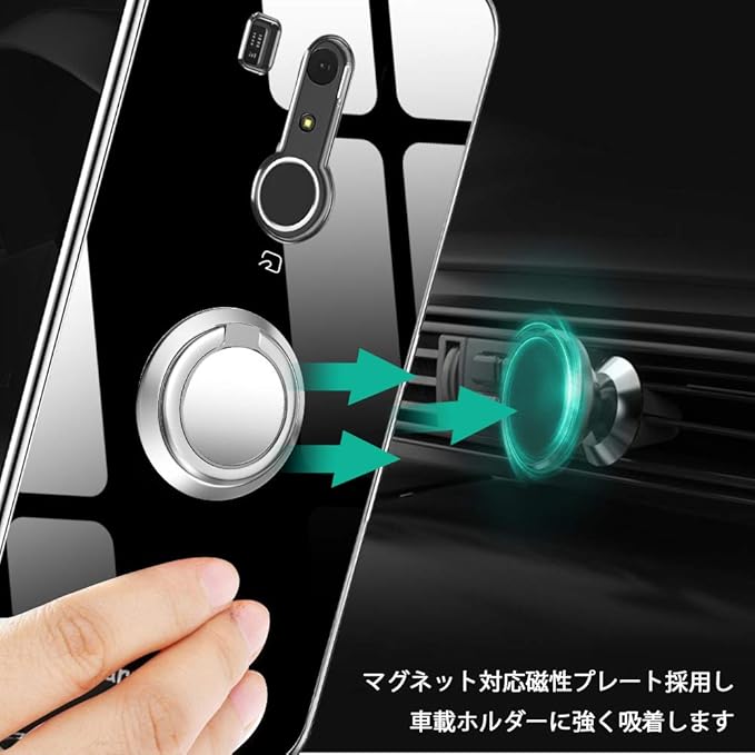 Aquos R2 ケース リング クリア 耐衝撃 シリコン 黄変防止 指紋防止 車載スタンド対応 リング ケース 360度回転 マグネットカメラ保護 着脱しやすC54-12(cp)