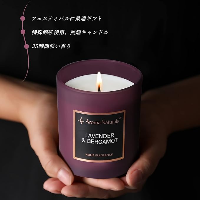 アロマキャンドル 大豆ワックスキャンドル 35時間ジャーキャンドル プレゼント (Lavender & Bergamot)