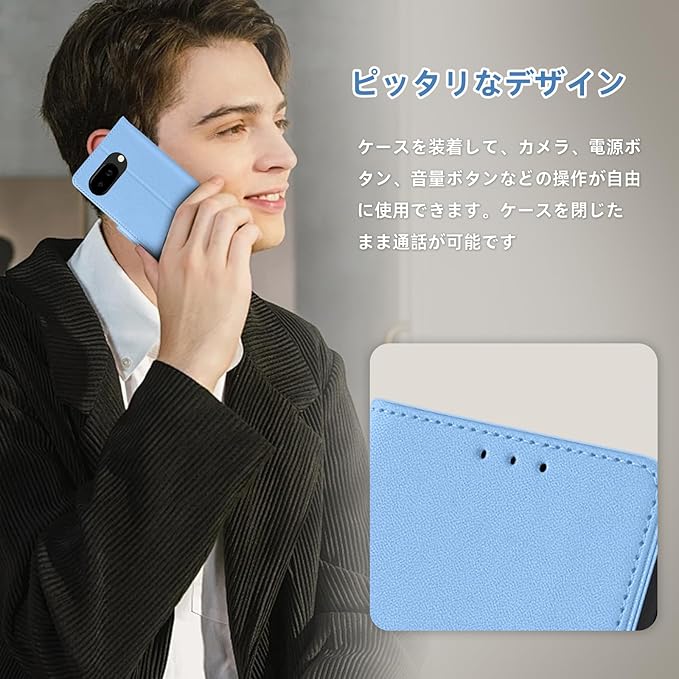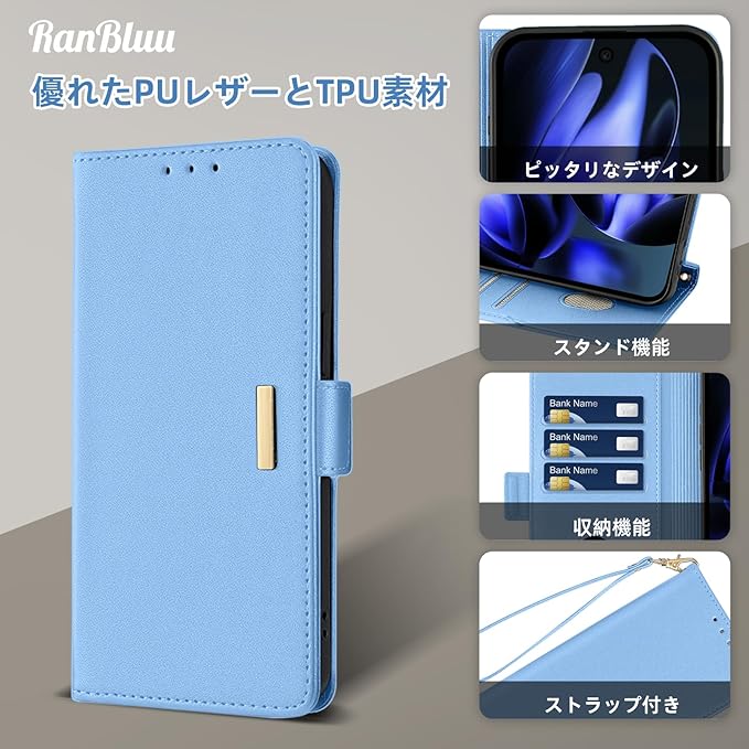 RanBluu コンパチブル Google Pixel 9A ケース 手帳型 グーグル ピクセル9a用 レザーケース 携帯カバー スマホケース 財布型 カード収納 マグネット開閉 カメラ保護 横置きスタンド機能 ストラップ付き 耐摩擦 耐衝撃 全面保護(Google Pixel 9A 対応 ブルー)