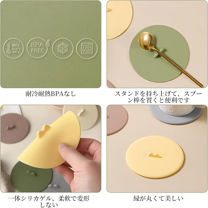 Doyime マグカップ カップカバー【4個セット】マグカップ 蓋 かわいい山の形 シリコン 蓋 可愛い コップ蓋 再利用可能 食洗機対応 耐冷 耐熱 漏れ防止 気密シール 防塵 ウォーターカップ コーヒーカップ ワイングラス用