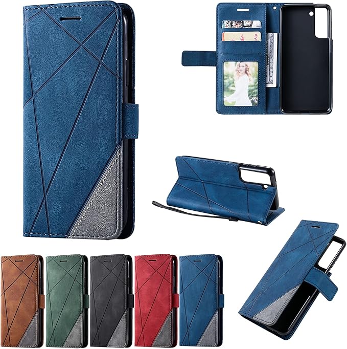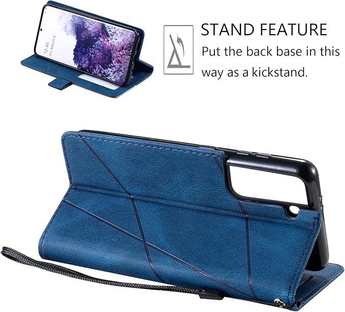 UnivoColors Galaxy S21 5G(SCG09/SC-51B)手帳型ケース 対応 ギャラクシー 財布型カバー カード収納 ストラップ付き スタンド機能 マグネット開閉 軽量TPU 横置き機能 スマホケース 防指紋 レンズ保護 落下防止 全面保護(ブルー)