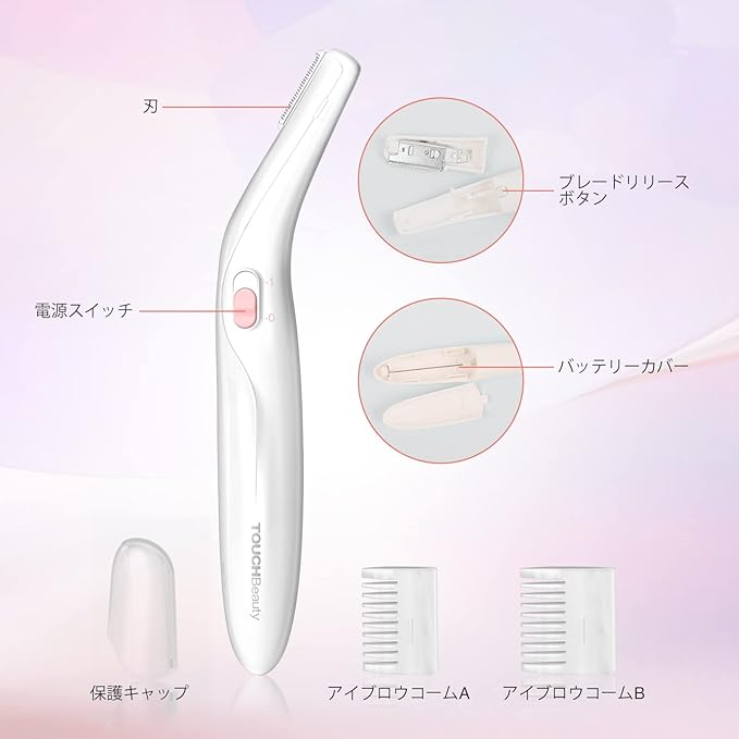 【肌に優しい】固定刃と可動刃を採用したTOUCHBeauty眉毛シェーバーは 電動眉毛シェーバーの刃先端が丸くなっており、直接触れないで肌へのダメージが少なく、お肌を守りながら、赤みや刺激を起こすこともありません。