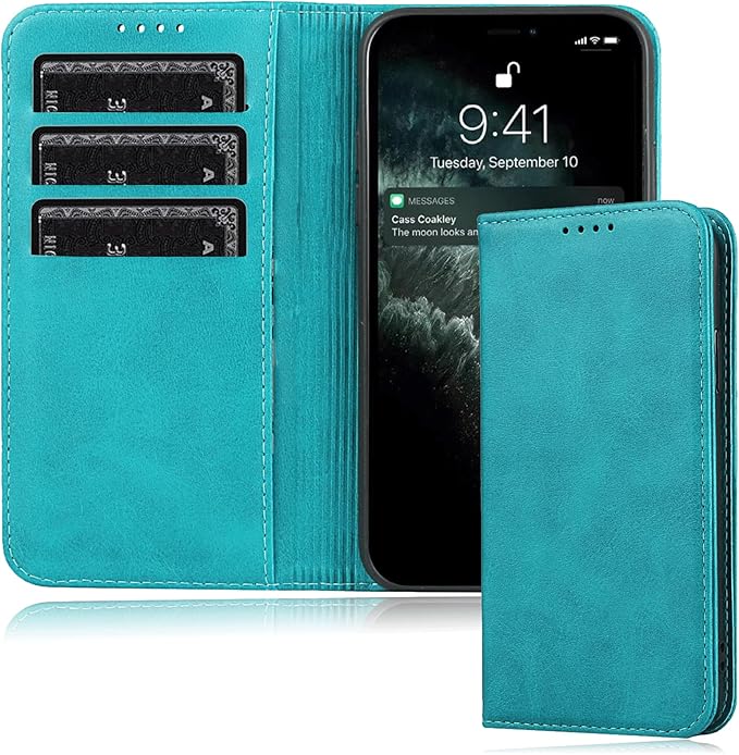 【iPhone X/Xs通用ケース手帳型】iPhoneXケース手帳型アイフォンXs 5.8インチFROLANスマホケース iPhone10レザー携帯カバー マグネット式 iPhone10sカード収納 軽量 汗や指紋防止 耐衝撃 スタンド機能 着脱しやすい (ターコイズ)