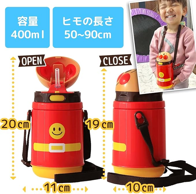 ●アンパンマンと一緒にお出かけ!お子様が喜ぶかわいい水筒です。