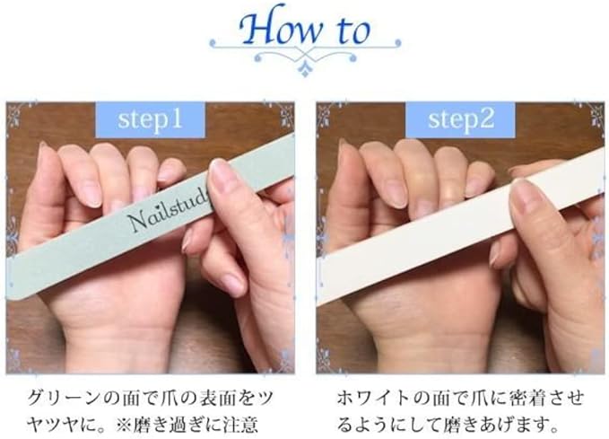 ダイヤファイルは目が粗いのでオフに有効!先細りタイプのエメリーボードはサイドストレートを整える際に使いやすい形です★2WAY シャイナーは緑の面で爪表面を磨いて整え裏のツルツルの面で磨きツヤを出します♪