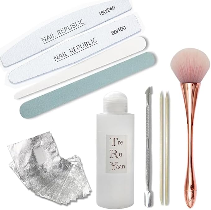 【セット内容】・トレルヤーン(150ml)・リムーバーラップ(20枚)・メタルプッシャ―・ダイヤファイル80/100・ ムーン型(またはダイヤ型)180/240・2WAYシャイナ―・エメリーボードホワイトまたはブラック・ウッドスティック(2本)・メタリック スレンダー ダストブラシ1本