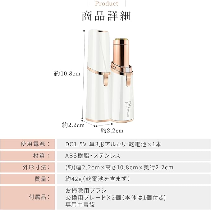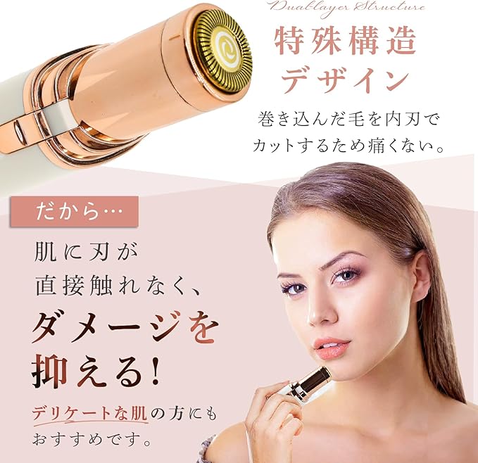【肌に優しい設計】肌に刃が直接触れない構造で負担を軽減し、ニッケルフリー18金コーティングプレートを採用してデリケートな肌にも安心。LEDライト搭載で細かいうぶ毛も見逃さず、軽量設計なので長時間使用しても腕や手首が疲れにくいです。
