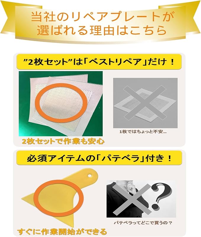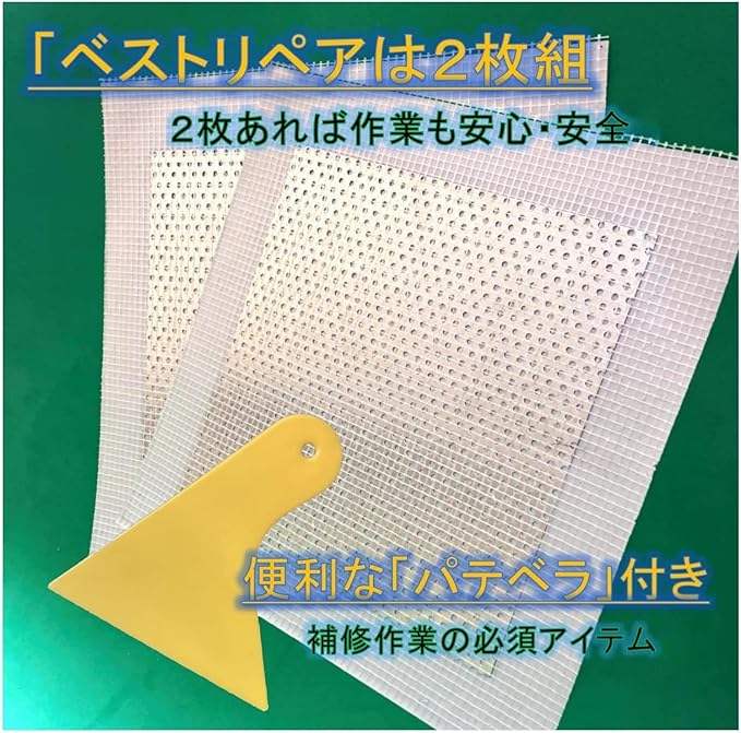 【日本製】 パテベラ付き2枚組 リペアプレート 壁穴補修キット 20 20cm (アルミメッシュ枠15 15cm) ウォールパッチ 穴うめ 壁紙補修 壁修理 補修材 グラスファイバー アルミ板 石膏ボード モルタル 簡単・スピーディー 施工説明書付き Amazon.co.jp