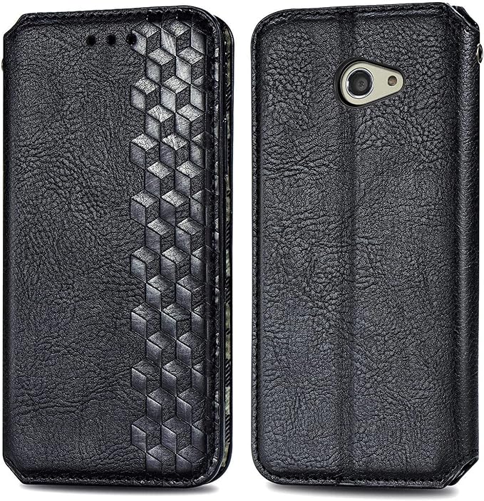に適用する京セラ BASIO4 KYV47 BASIO 4 かんたんスマホ2 A001KC ケース 手帳型 ノートブック型ビジネスフォンケース 携帯電話保護カバー強い吸引力ノートブック型多機能携帯電話ホルスター財布携帯電話ホルダーバンプパターンテクスチャ耐久性摩擦耐性携帯電話ケース男性と女性に適した多色オプション (黒)