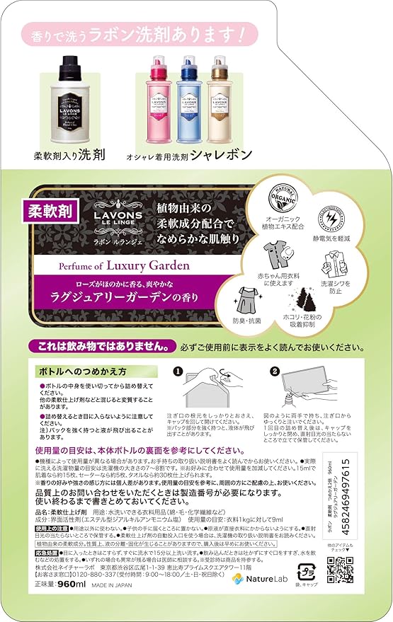 ラボン(Lavons) 柔軟剤 大容量 ラグジュアリーガーデン 詰め替え 960ml