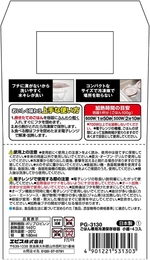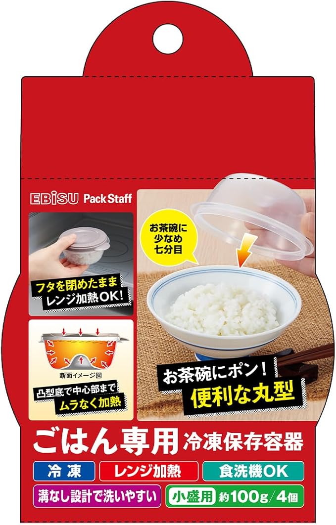 エビス(Ebisu) ごはん専用 冷凍 保存容器 小盛 4個組 100g 冷凍 レンジ加熱 食洗器OK 日本製 PG-3130