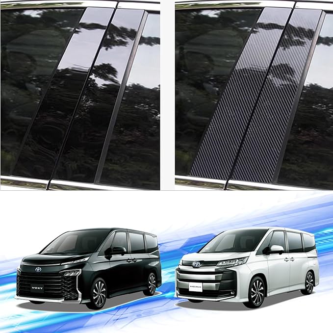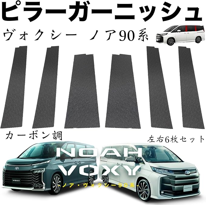 WeCar トヨタ ノア ヴォクシー90系 ピラーガーニッシュ 純正バイザー 装着車専用 専用 ピアノブラック カスタム パーツ アクセサリー 保護カバー 6点セット (デジタルカーボン調)
