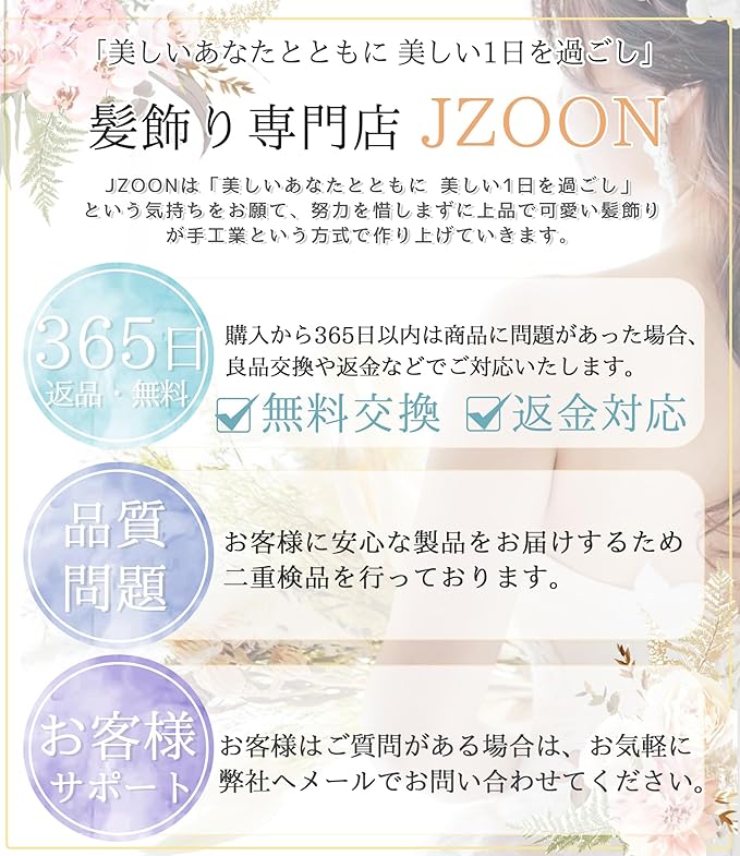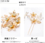 【ハンドメイド】職人が一点一点丁寧な手作業で仕上げたハンドメイドアイテム。留め具はUピン仕様ですので、留め具はUピン仕様ですので、ヘアスタイルにあわせて簡単に取り付け可能です。ワイヤーで角度等自由に曲げられるので、サイドにもバックにお付け頂いても映えます。