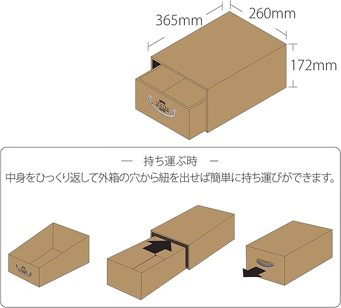 引き出しをひっくり返すと、そのままロープをもって持ち運びもできる優れもの。