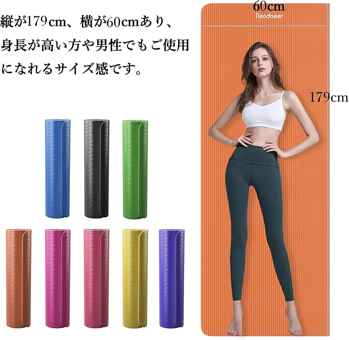 Reodoeer ヨガマット 厚め トレーニングマット エクササイズマット ストレッチマット 収納バンド 収納バッグ付き 厚さ10mm