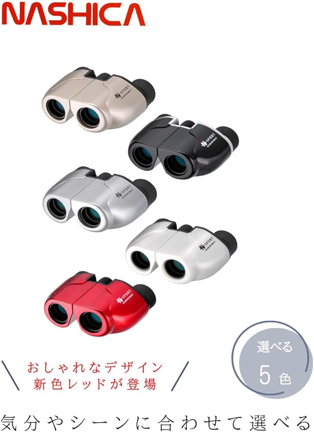 新しくレンズを1枚増やして、マルチコーティングにしました。スッキリとクリアーな視界でストレスを感じさせない、見易さを追求した抜群の双眼鏡です。おしゃれなデザインで、新色レッドカラーが登場。コンサ-ト、スポーツ観戦、観劇や旅行のお供等に最適で幅広い活躍の場で是非ご活用下さい。一度ご自身でこの究極をお試し下さい!!