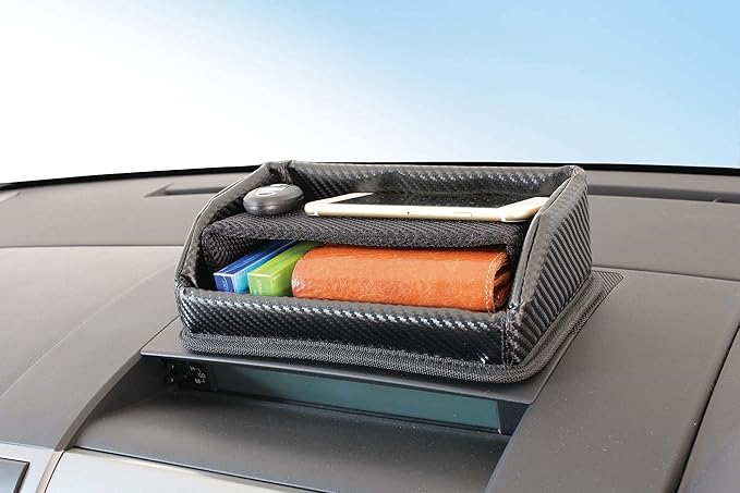 車内の質感を高めるカーボン調生地のトレイです。
