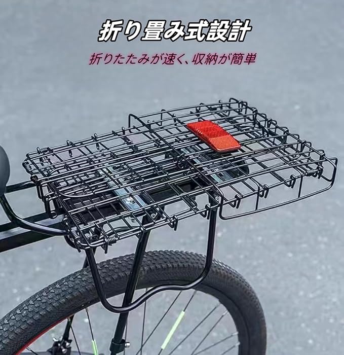 自転車用バスケット(カゴ) 自転車リアバスケット 後ろ固定式 後ろバスケット 軽量 大容量 簡単な組み立 ポータブル 軽快車用 荷台付折りたたみ自転車用 折り畳みかご