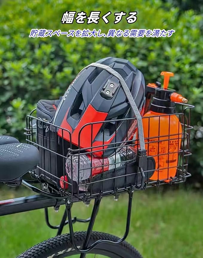 セット内容:取り付け用アクセサリー、ネジ、リフレクターなどを含む 材質:鉄 色: 黒 設置タイプ: フレーム設置 サイズ: 37*27*20cm 耐荷重:50KG 自転車のバスケットは、持ち運びが簡単で組み立てが簡単な固定バスケットです 軽量ですが容量もたっぷりなので、長期旅行や普段使いに最適です 取り付けは非常に簡単で、特別な工具や知識は必要ありません わずか数分で自転車に取り付けることができます 折りたたむこともできるので、持ち運びや保管も簡単です 自転車に乗らない時や旅行時にも便利です 高品質の素材で作られており、耐久性があります 荷物をしっかりホールドしてくれるので安心してご利用いただけます 軽自動車や荷台付き折りたたみ自転車まで幅広く使える自転車用カゴです 利便性と耐久性を兼ね備えたバイクパンで快適なライドをお楽しみください