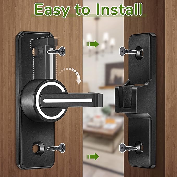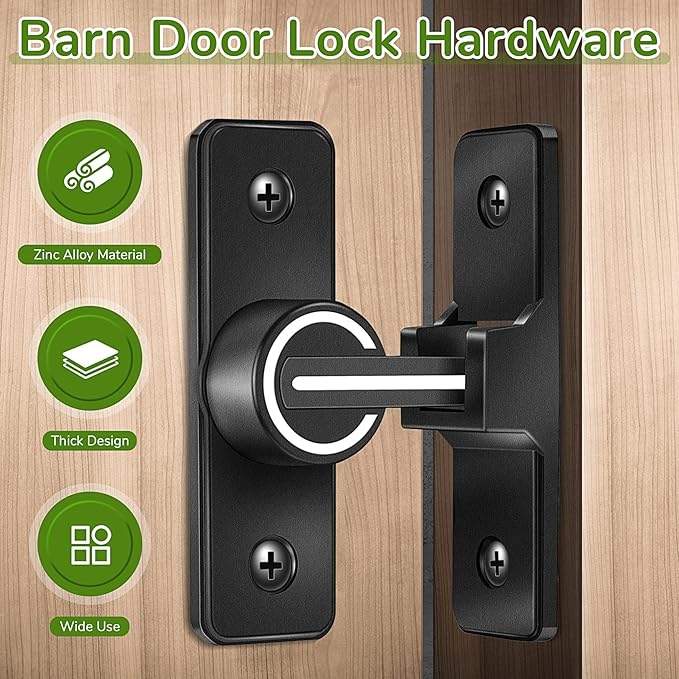【安全】お子様や大人が誤って侵入し、必要なプライバシースペースに影響を与える心配はありません。直角ドア用に特別に設計された納屋のドアロックは、プライバシーを確保します。