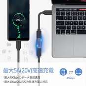 【40Gbpsの高速転送と5Aの高速充電】USB4.0は最新のType-C 3.2テクノロジーを採用し、最大40Gbps(実転送速度2.8GB/秒、書き込み速度2.1GB/秒)の高速Thunderbolt 4データ転送を可能にします。) 8K@120Hzまたは4Kディスプレイ2台を駆動するのに十分な帯域幅を備えています。ファイル、ドキュメント、オーディオ、ビデオを瞬時に高速転送できる。最大電流は5Aまで、最大電力は100Wまでです。 注:1. 40Gbpsは理論上の最大転送速度です。実際の速度はPC端末やケーブルの影響を受けますので、実際の転送速度をご参照ください。