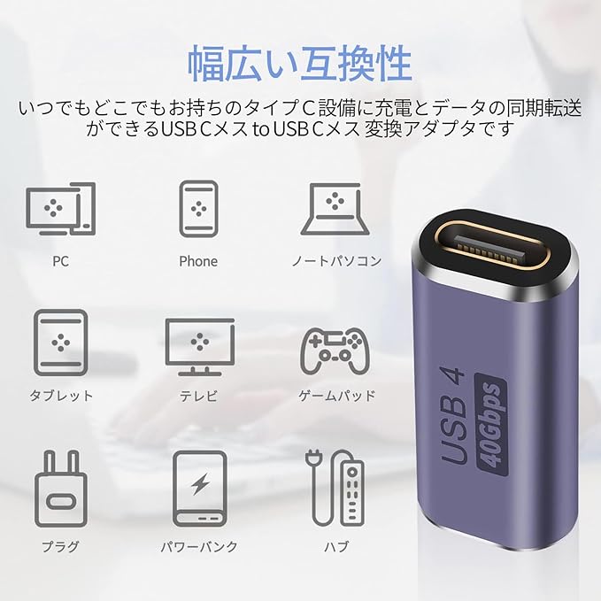 USB Type-c アダプタ メス to メス 2個セット 40Gbps 高速データ転送 & 100W/5A 急速充電 & 8K@120Hz ビデオ出力 USB-C Type C 延長コネクタ USB4 メス 延長ケーブル アダプタの両端を接続して使用します