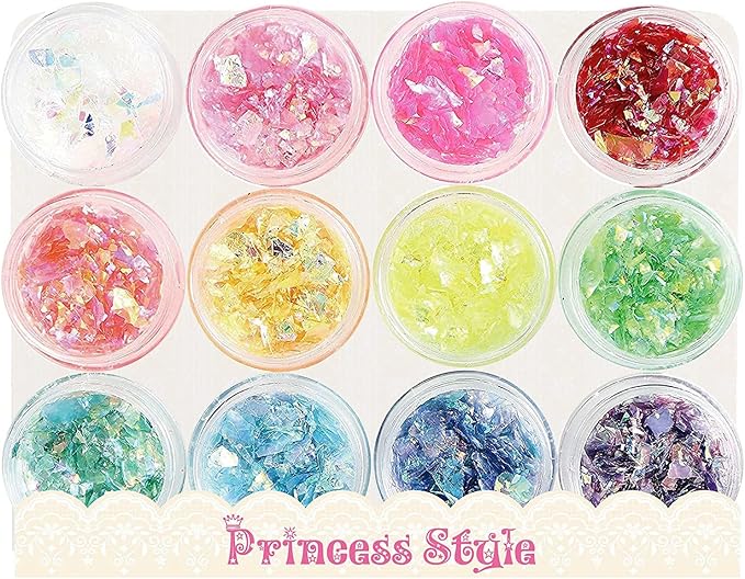 Princess-style クラッシュ ホログラム レジン 封入 ネイル パーツ ネオンフレーク 12色セット
