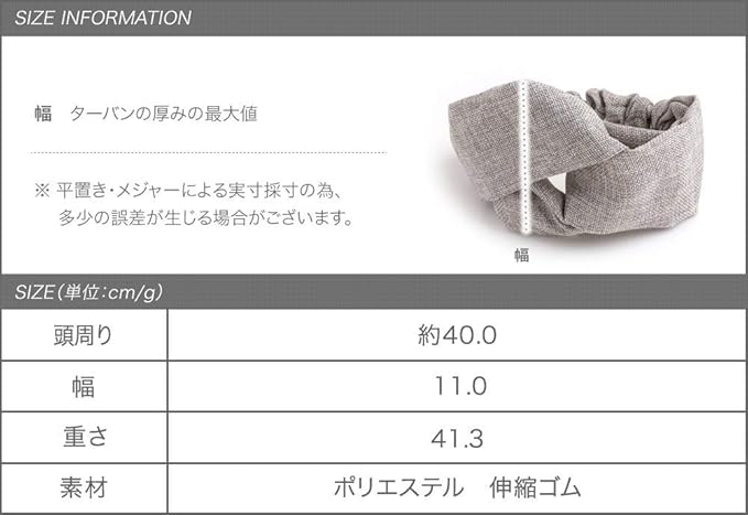 【サイズ】 頭周り 約40.0cm 幅 11.0cm