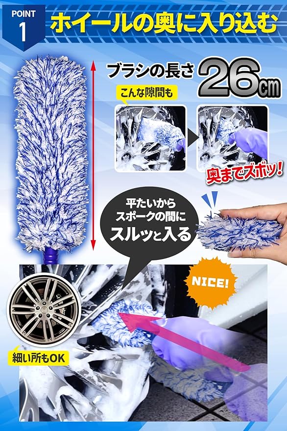 【マイクロファイバー素材で傷つけない・泡が飛び散らない】ホイールブラシ 洗車ブラシ ホイール 洗車 ホイール用 タイヤブラシ 洗車用品 傷つかない 柔らかい ディテールブラシ