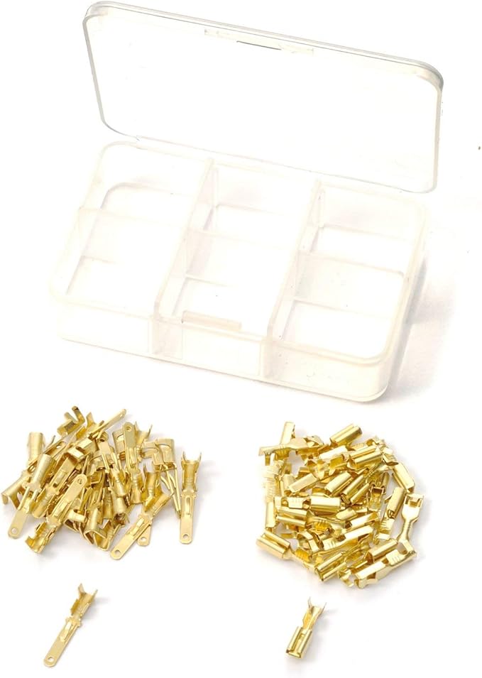 コネクター用平型端子のオス、メスのセット。材質:黄銅。表面処理:防錆処理。適合電線サイズ:AVまたはAVS0.5〜2.0。