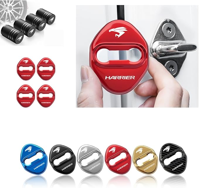 For ハリアー80系専用アクセサリー ドアロックカバー HARRIER ハリアー 80系60系 内装パーツ ステンレス ドアロックストライカーカバー 高級鏡面ステンレス製 錆防止 4個セット(贈り物:ハリアー タイヤバルブキャップ) (レッド)