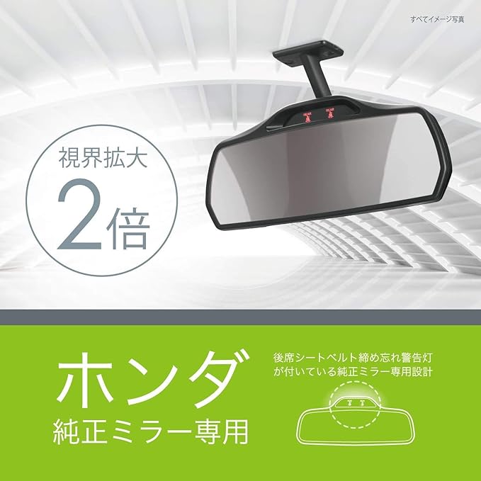 ホンダ車の後席シートベルト警告灯が付いている純正ミラー専用設計 純正ミラーにかぶせるだけの簡単取り付け