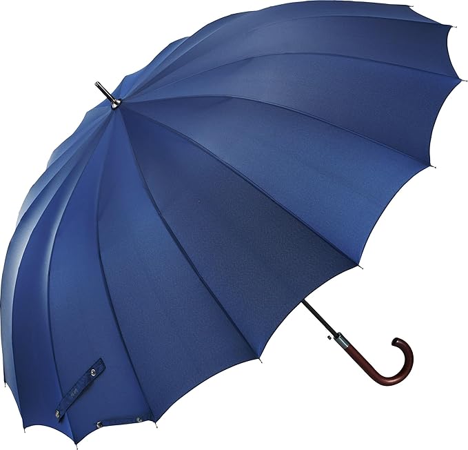 Waterfront 長傘 雨傘 『 16Kムジ ジャンプ 』 ネイビー 65cm キレイな弧を描く16本骨 親骨 FRP + 16本骨 + 撥水 4級 + ワンタッチ メンズ U165-0905NV1-B2