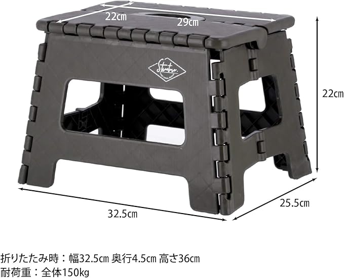 不二貿易(Fujiboeki) 折りたたみ椅子 踏み台 ステップ 幅32.5 奥行25.5 高さ22cm カーキ アウトドア コンパクト スツール 耐荷重150kg 86073