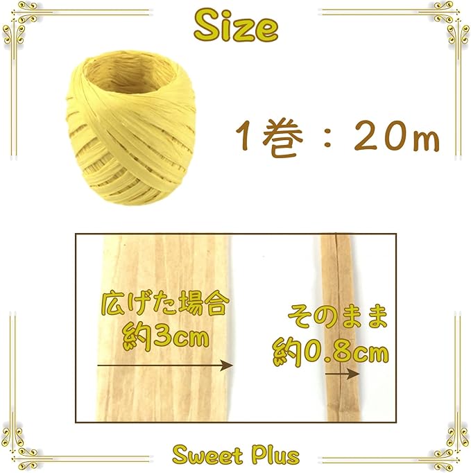 Sweet Plus「ペーパーラフィア リボン 紙紐 ラフィア ラッピング 包装 紐 紙製リボン パルプ クラフトリボン かご編み 15色・紙タグ 約100枚付」