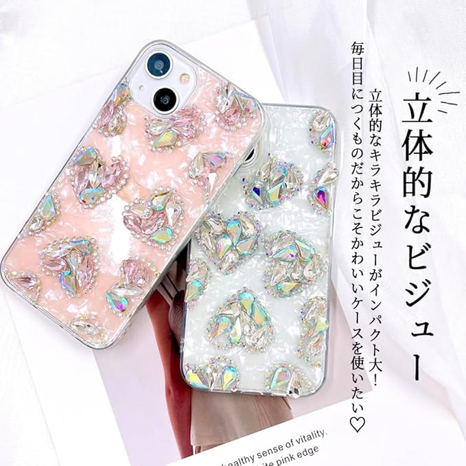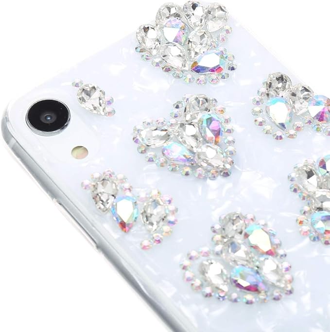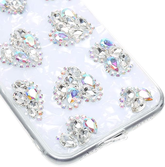 ONLYOU iPhone SE3 第3世代 ケース 韓国 ハートビジューケース シェル風 キラキラ シンプル 個性的 トレンド ケース かわいい おしゃれ iPhoneケース スマホケース 携帯ケース iPhone7 iPhone8 iPhonese2 iPhonese3 (ホワイト, iPhone7/8/SE2)