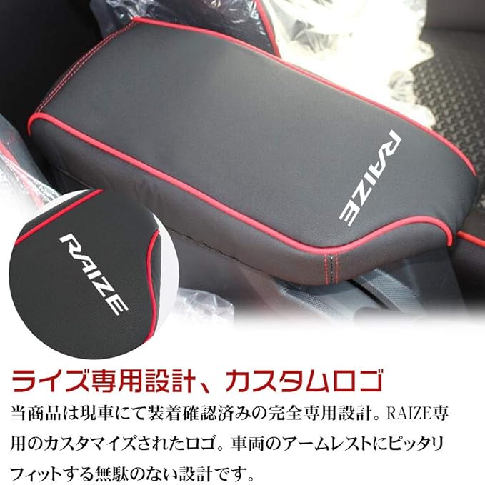 BOYOUS ライズ A200A/210A型(2019年11月~)専用設計 アームレスト カバー センター カスタムRAIZEロゴ コンソール カバー コンソールボックス レザー カバー カスタム パーツ 汚れ防止 引っかき傷対策