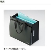 ○前面にジャバラポケットが付いているのでパソコンや周辺機器などの嵩張る収納物と書類を分けて持ち運びできます。