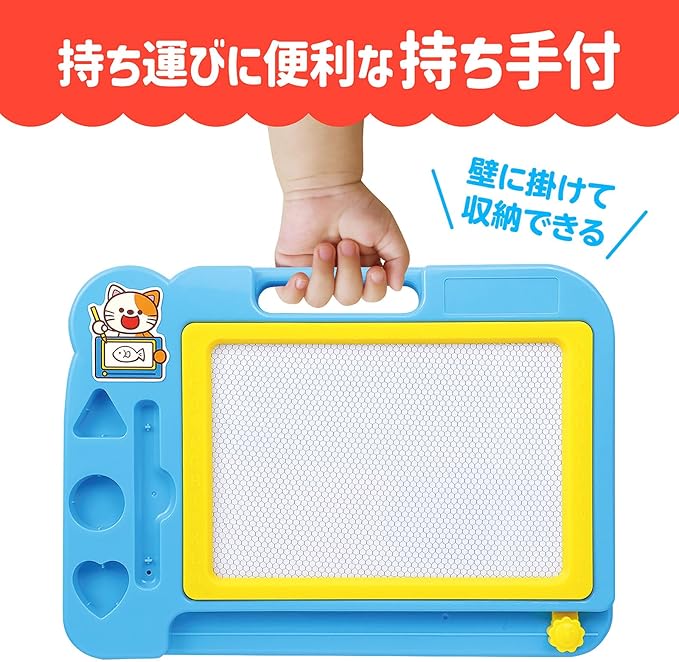 レバーを動かすとかいた絵や文字を簡単に消すことができるマグネットペン付き!マグネットペンは専用ポケットに収納できる!