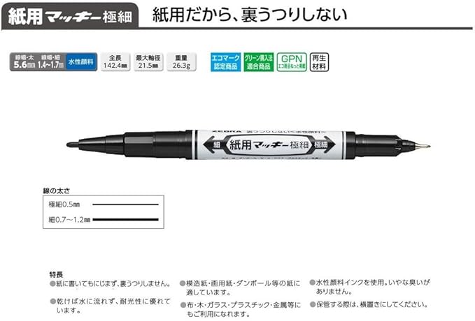 【ペン先】細字・極細両用【線幅】細字0.7~1.2mm/極細0.5mm