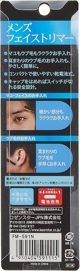 ロゼンスター フェイストリマー メンズ用 眉毛シェーバー バリカン 乾電池式 (眉毛 耳毛 うぶ毛 処理) フェイス用 電動シェーバー FM-591 ブラック