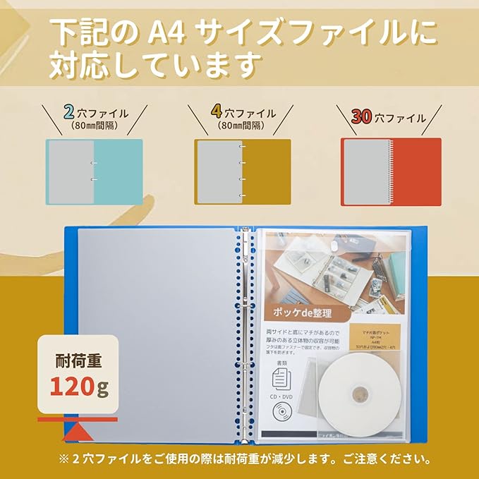 【とじ穴】30穴および80mm2穴・4穴兼用穴【入数】2枚
