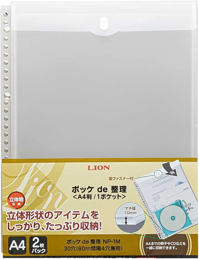 ライオン事務器 ファイル リフィル ポッケde整理 なんでもポケット 2枚 A4 NP-1M クリア