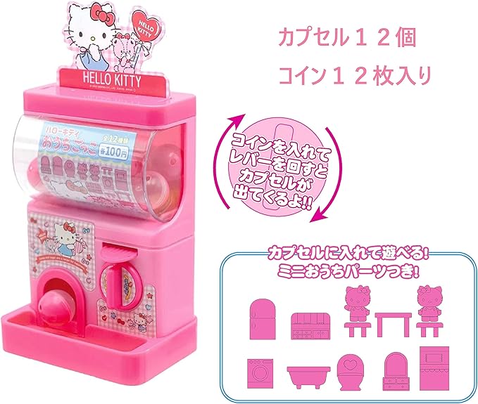 商品紹介 スタッキング可能なガチャ本体が2柄入り同梱のコインをいれてレバーを回すとカプセルがでるのでお店屋さんごっこがとても楽しくなります。カプセル中身用キティのミニおうちパーツも同梱 安全警告 幼児さん使用時には小部品の誤飲に御注意ください