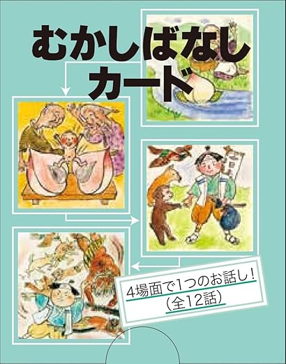 このカード教材は、4枚1組で日本の代表的な昔話の構成ができるカードです。全12話(合計48枚)分のカードが入っています。